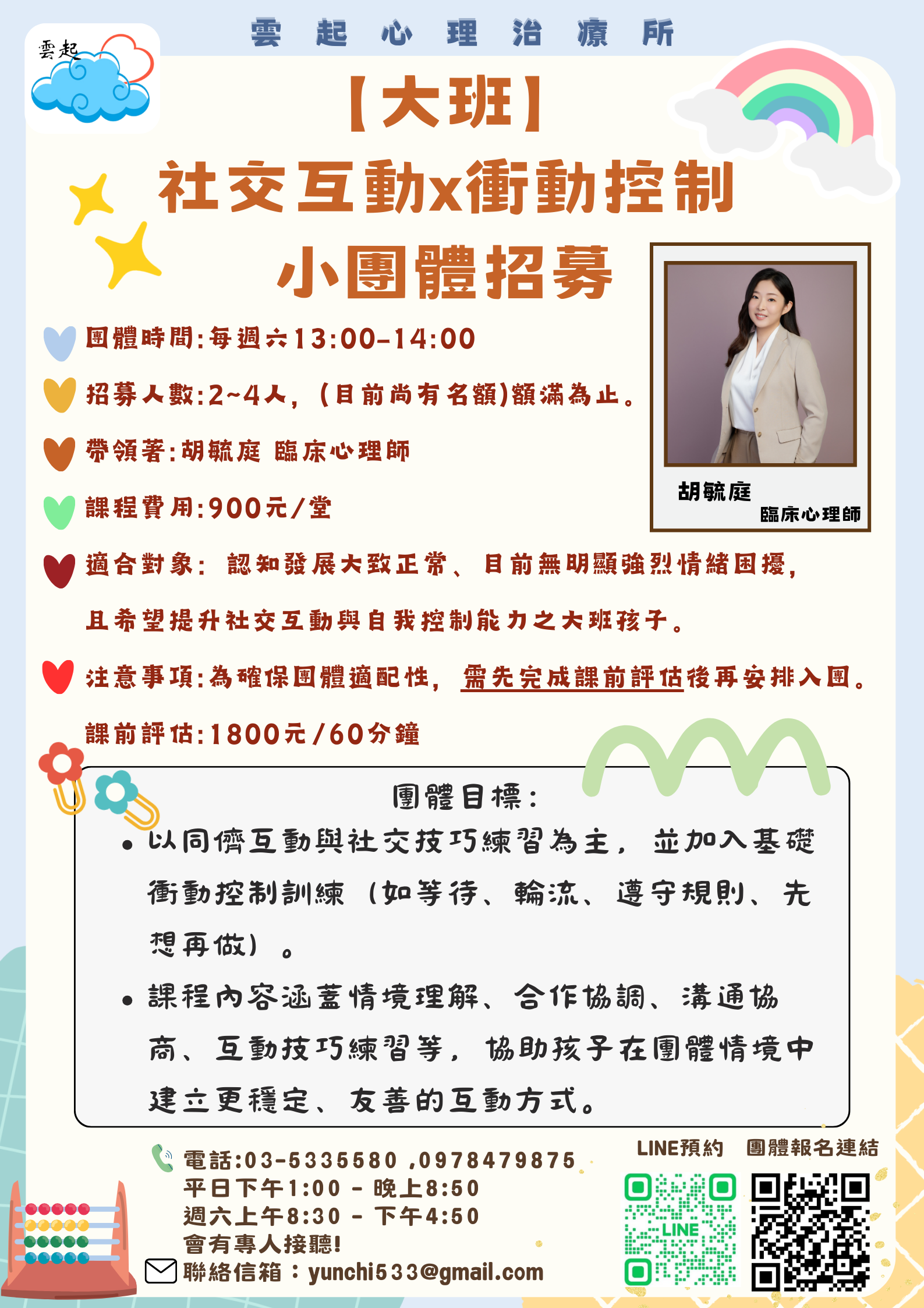 重要提醒:為確保團體適配性,需先完成課前評估後再安排入團。